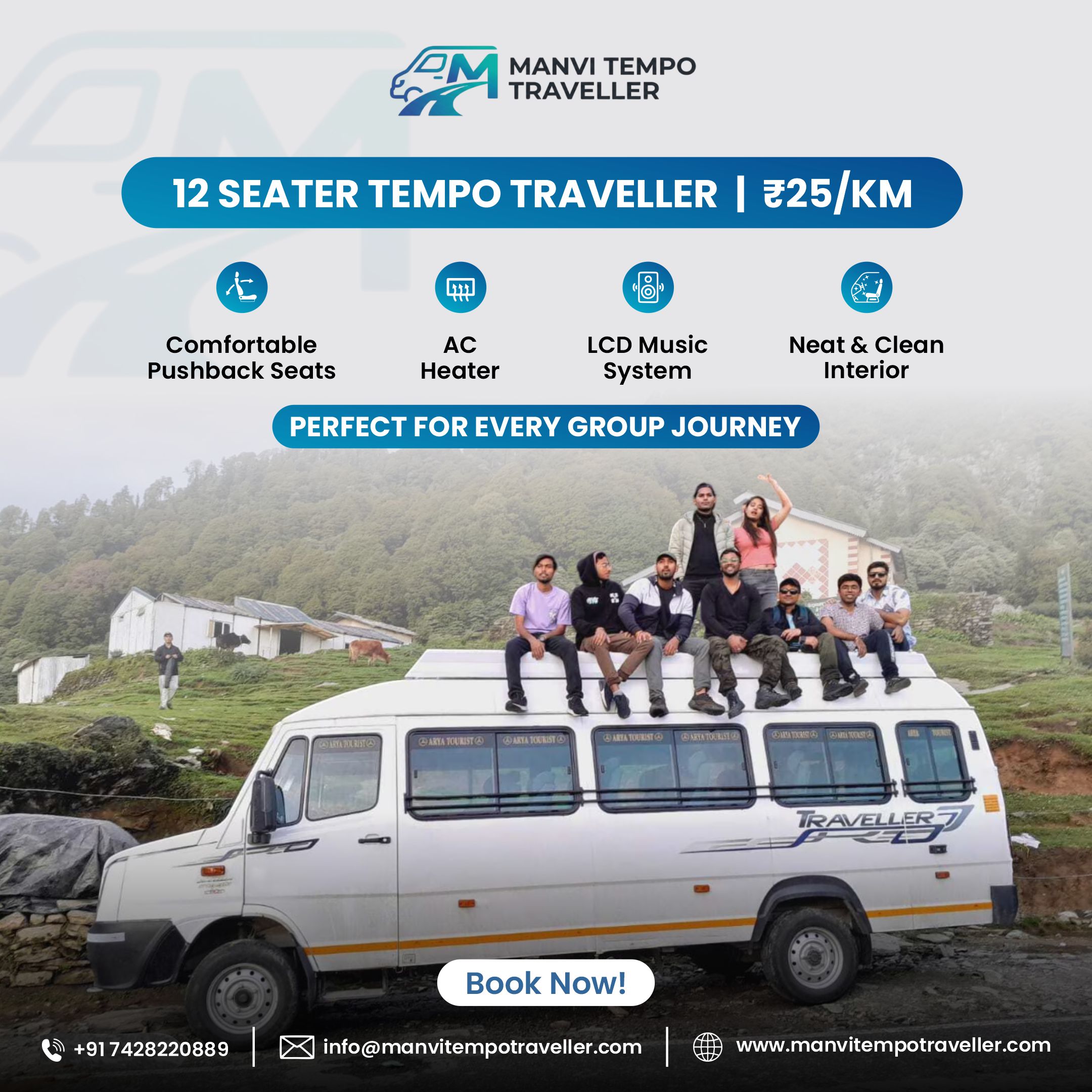 12 SEATER Tempo Traveller in Noida at the lowest fare ₹25KM