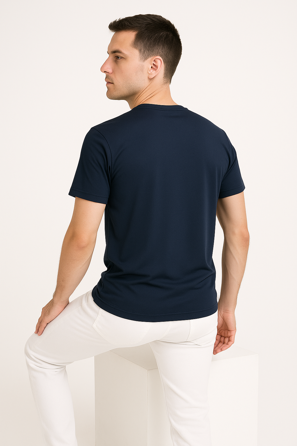 20250907 2342 Navy T Shirt Display remix 01k4jnxp7nf3nsm8va0wxnz53t