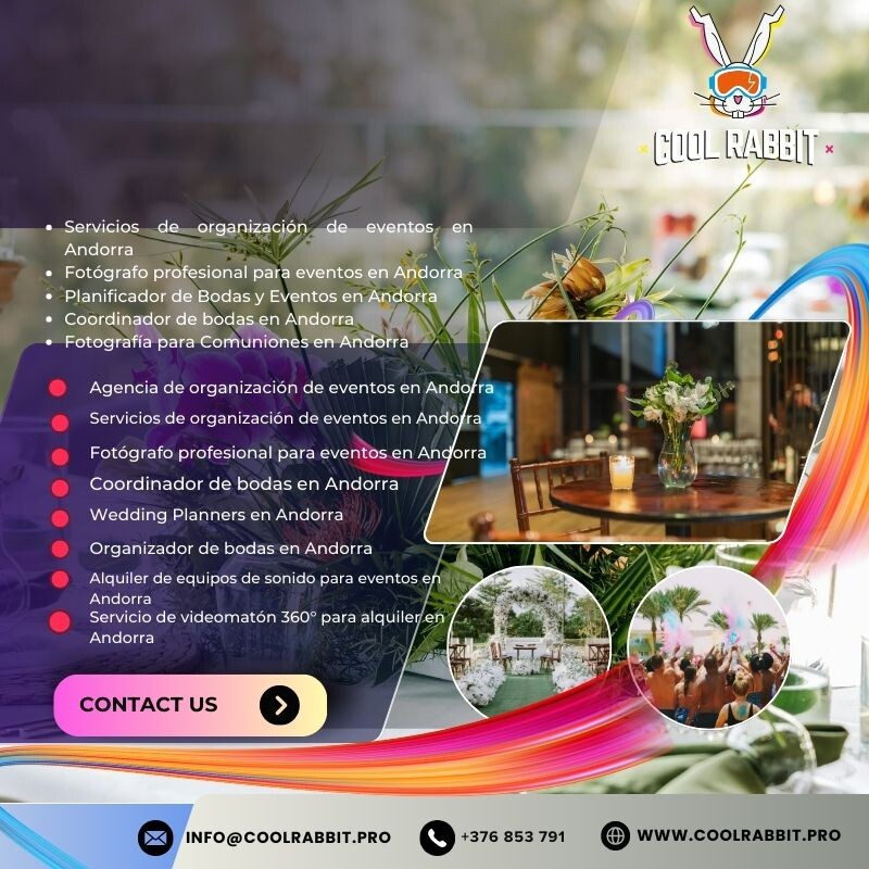 Si buscas una agencia de organización de eventos en Andorra, Cool Rabbit es la opción ideal para crear experiencias únicas y memorables. Especializados en la planificación y ejecución de todo tipo de eventos, desde celebraciones privadas hasta eventos corporativos, ofrecen un servicio integral adaptado a cada cliente.