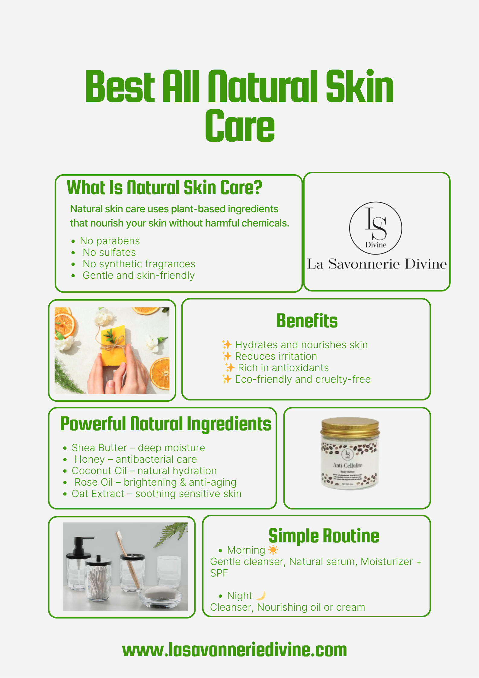 Discover the best all natural skin care for healthy, glowing skin. Natural skincare products made with plant-based ingredients help hydrate, nourish, and protect your skin without harsh chemicals. Choose gentle, eco-friendly skincare that supports your skin’s natural balance. For more information Visit Here: https://lasavonneriedivine.com/