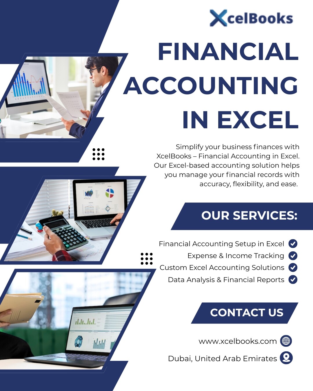 Financial accounting in excel by XcelBooks offers a simple and efficient way to manage your business finances using the power of Excel. It helps businesses track transactions, manage income and expenses, create financial statements, and maintain accurate records in an organized spreadsheet format. Designed for small businesses, freelancers, and startups, XcelBooks provides easy-to-use templates and automated calculations that save time and reduce errors. With Financial Accounting in Excel, you gain better financial visibility, improved reporting, and greater control over your accounting processes without the need for complicated accounting software. https://xcelbooks.com/