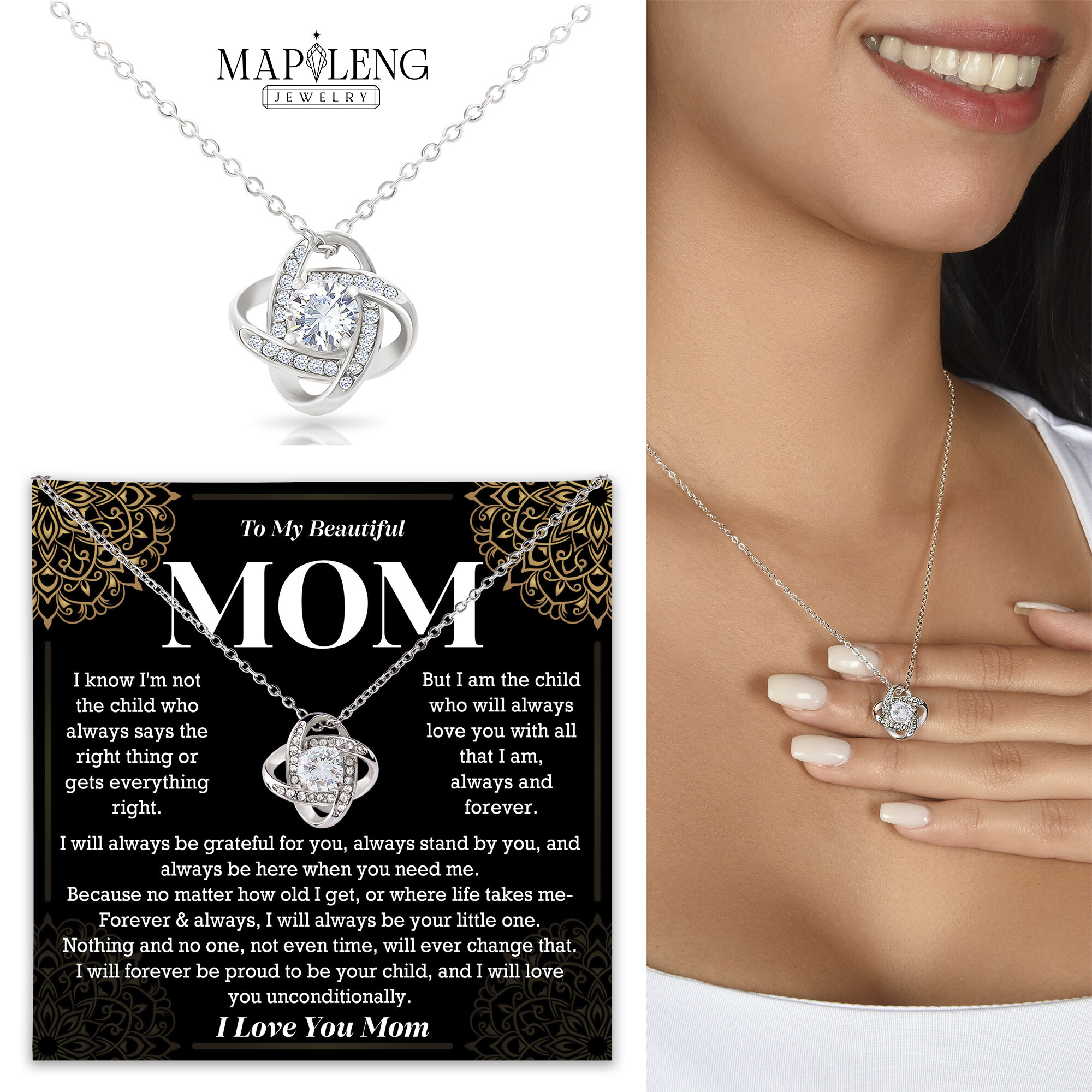 Love Knot Necklace, Silver, Pendant, Message CardPendant, Love Knot Amazon 2000x2000, Message Card