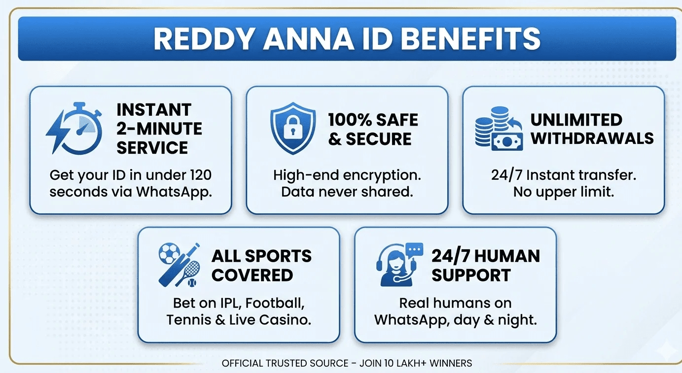 Reddy Anna Official ID Benefits Instant ID, 100% Secure, Unlimited Withdrawals & 247 Support!
