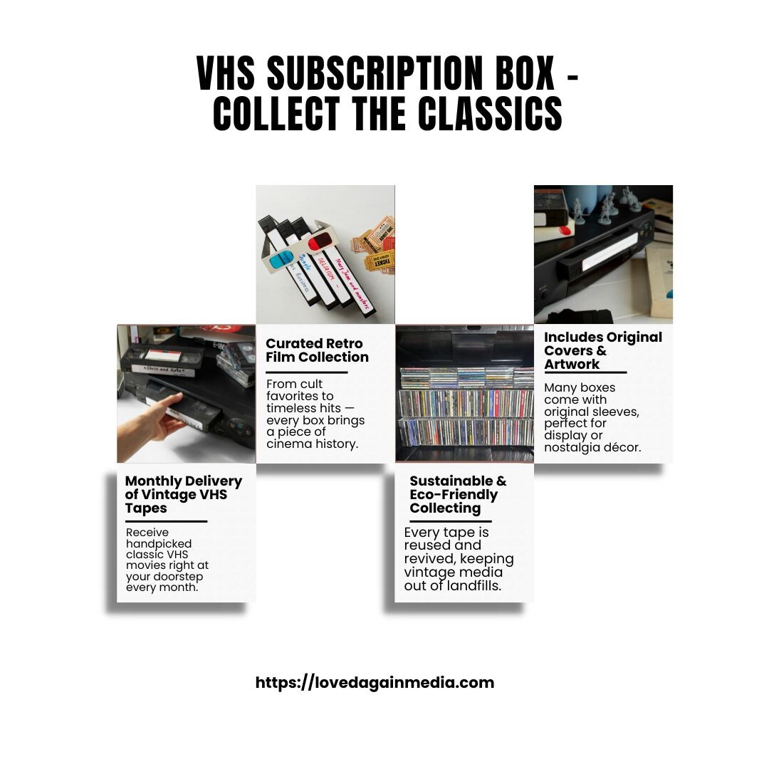 The VHS Subscription Box brings nostalgic movie magic straight to your door every month. Discover rare and classic VHS tapes from every genre—carefully curated for collectors and film lovers. Relive the golden era of home cinema with authentic packaging and timeless entertainment delivered right to you.