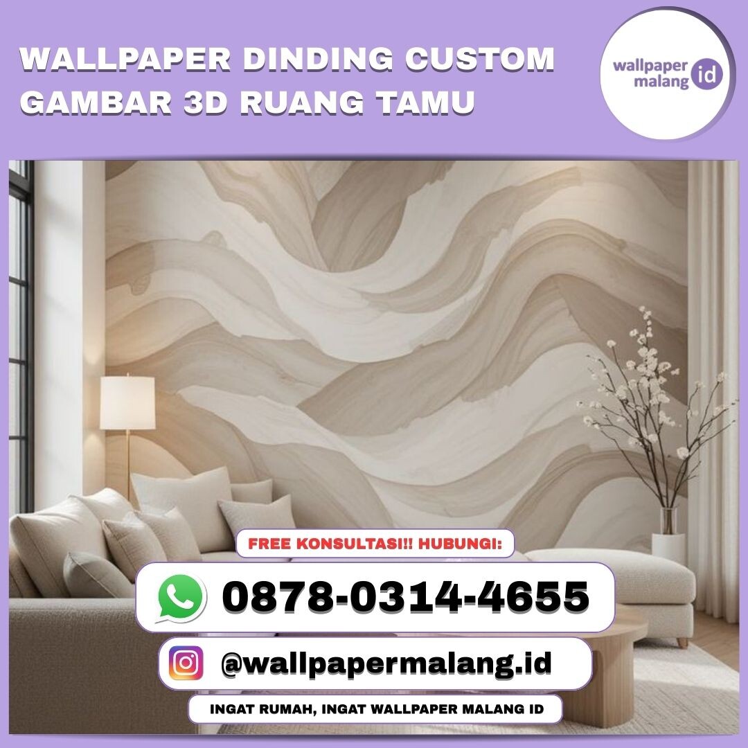 Wallpaper dinding custom gambar 3D ruang tamu