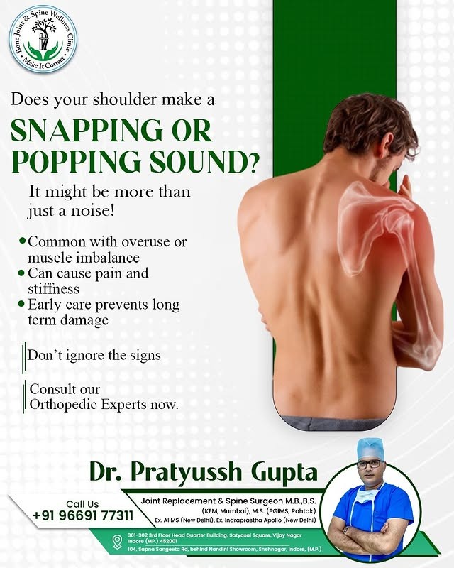 That odd popping sound in your shoulder isn’t just a harmless quirk—it could be a sign of muscle imbalance or joint stress. Overuse and poor posture often trigger stiffness and pain that worsen over time. This visual nudges you to listen to your body’s signals and seek expert orthopedic advice before a minor issue becomes a major setback. For more information, visit https://boneandjointwellness.in/shoulder-problems-treatment-in-indore/.