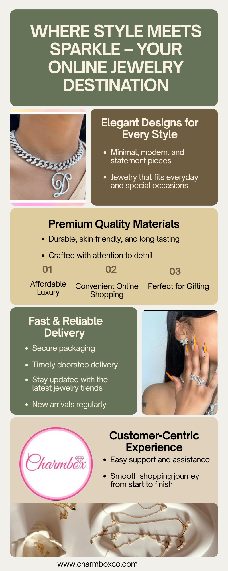Upgrade your style with our carefully curated collection of modern and elegant jewelry. Our online jewelry store brings you premium-quality pieces at affordable prices, making it easy to find the perfect accessory for any occasion. For more information Visit: https://charmboxx.medium.com/where-style-meets-sparkle-your-online-jewelry-destination-97780c9bfaad