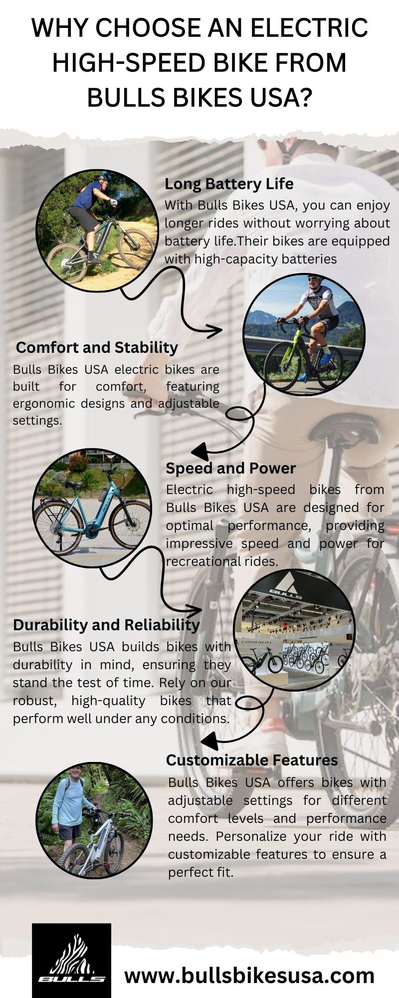 BULLS BIKES USA as an exclusive bicycle and eBIKE manufacturer. BULLS has been in the eBike market since 2010, mainly in continental Europe. Since the early stages, partnering in the development and production of eBike systems with top premium suppliers, gave BULLS a key advantage in developing the most innovative systems, far ahead of the competition. Website: https://bullsbikesusa.com/